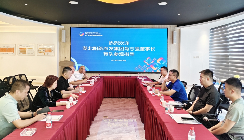 11月8日上午,湖北阳新农业发展集团有限公司董事长肖志强带队到访供广深圳肉类智能交易市场,供广肉类智能市场董事长陈伟峰携公司同仁热情接待,双方以“产业协同、互利共赢”为主题,通过座谈交流与实地考察,深入探讨合作方向,为后续联动发展奠定基础。
