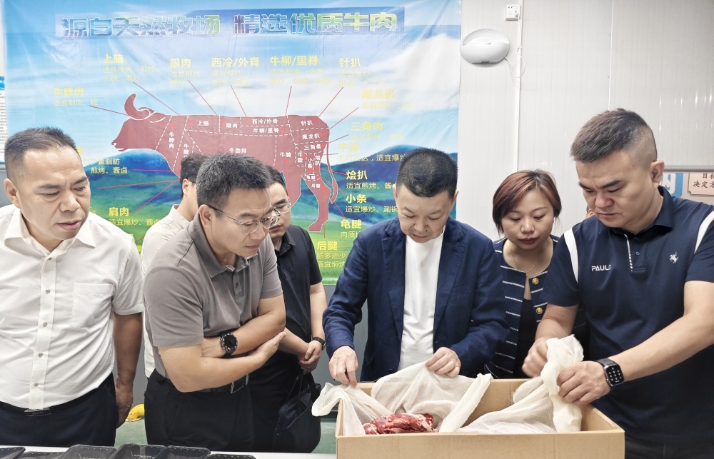11月11日下午,湖北省阳新县县委副书记、县长卢川率队莅临供广深圳肉类智能交易市场考察指导。同行人员包括县招商服务中心主任吴炜、副主任柯于烜,阳新农业发展集团(以下简称“阳新农发集团”)总经理梁传丰,以及武汉宜速鲜食品有限公司(以下简称“武汉宜速鲜”)总经理魏斌。供广肉类智能市场董事长陈伟峰携公司同仁全程陪同,各方围绕“先筑基础、后聚合力”的肉类产业协同路径深入洽谈,共绘合作蓝图。