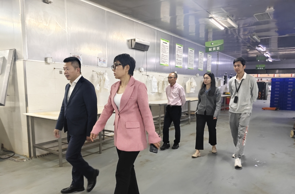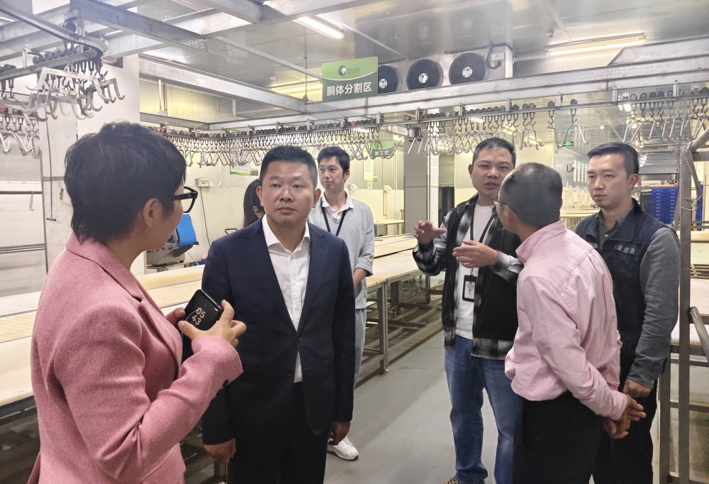 座谈会后,蔡葭霖副主任一行在崇金峰总监的陪同下,深入供广肉类智能市场经营现场实地考察。作为深圳“菜篮子”工程的重要参与者,供广以“全程冷链、全程溯源、全程不脱温”的智能化特色,在保障市民肉类消费安全、稳定市场供应方面发挥着重要作用。考察组先后察看了大型分割车间、冷链仓储中心、家禽及牛羊交易区,详细询问了市场肉品供应总量、价格波动趋势、客户群体分布及智能化设备运行情况,对市场规范的经营管理和先进的溯源体系给予了充分肯定。