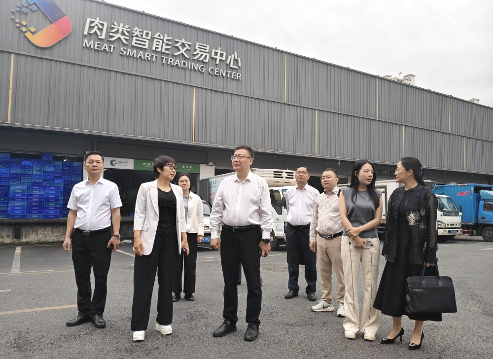 考察团先后深入供广白条交易大厅、家禽及牛羊交易区、检验检测中心等核心区域,详细问询供广运营概况、智能化管理模式及产品供销全流程,对供广在标准化建设、数字化交易及民生保供等领域的阶段性成果给予高度肯定。